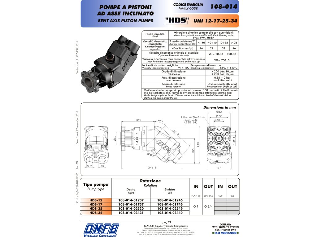 Jednosměrné pístové čerpadlo s průtokem 34l/min - UNI příruba - Pravé.