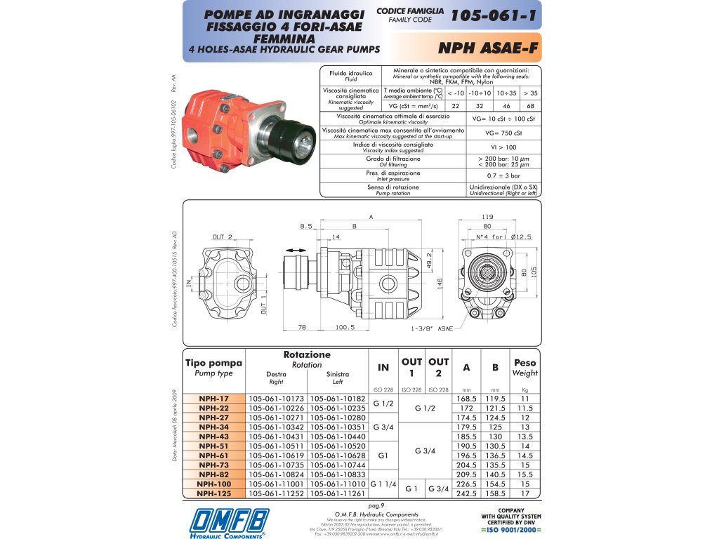 Jednosměrné zubové čerpadlo - ASAE - female - pravé.