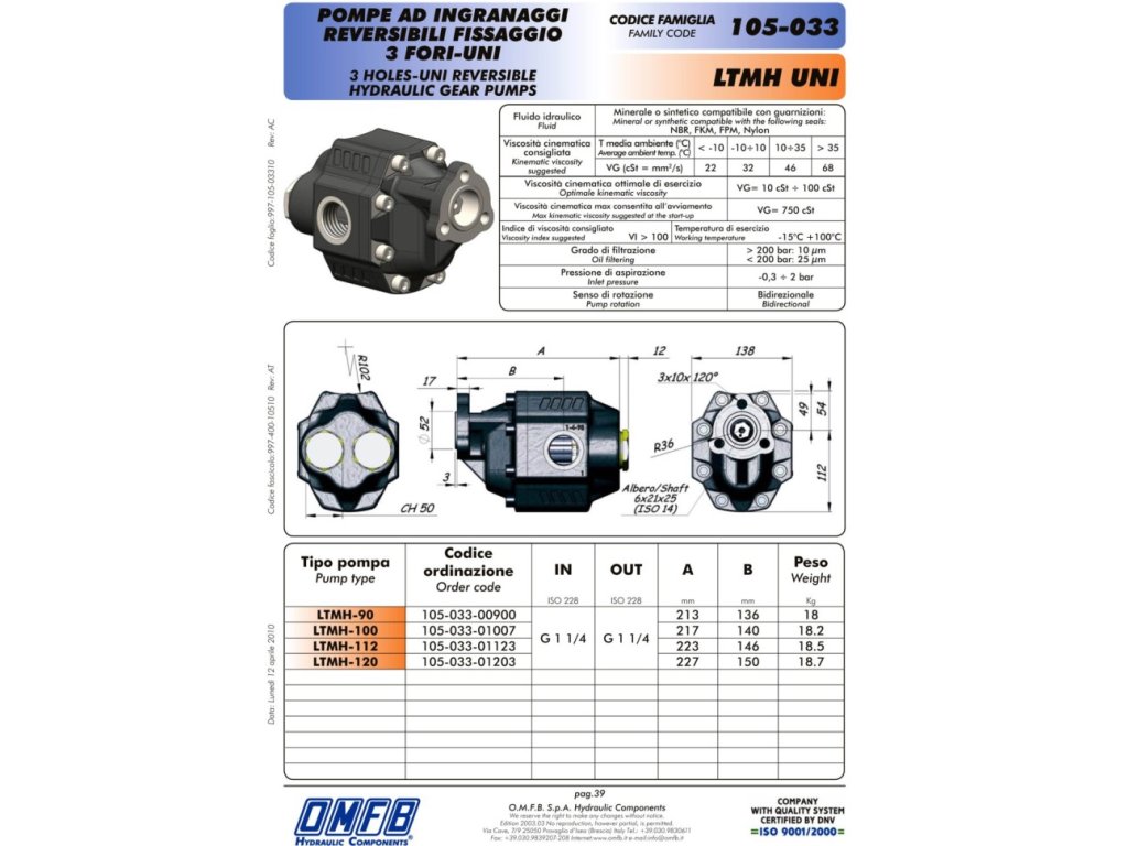 Hydraulické čerpadlo LTMH UNI 112